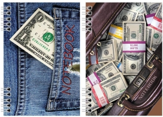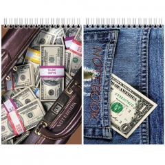 Блокнот на на гребне А6. 48 листов Полиграфсоюз с лаком c блестками NOTEBOOK Деньги Ассорти