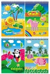 Блокнот на на гребне А6. 60 листов Полиграфсоюз c блестками объемные Животный мир Мультфильм Ассорти