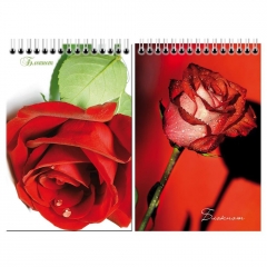 Блокнот на на гребне А6. 48 листов Полиграфсоюз с лаком c блестками Роза Ассорти