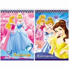 Блокнот на на гребне А6. 48 листов Полиграфсоюз с лаком c блестками Принцессы ассорти