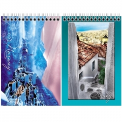 Блокнот А6. 40 листов ПЗ в клетку на гребне картонная обложка лак Крымские пейзажи ассорти