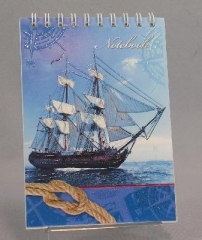 Блокнот на на гребне А6. 48 листов КТС с лаком c блестками Парусник