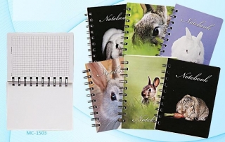 Блокнот на на гребне А6 . 100 листов MIRACULOUS клетка Зайчики ассорти