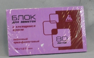 Блок липкий HOPAX 76*127 80л. ярко-фиолет. 21414B