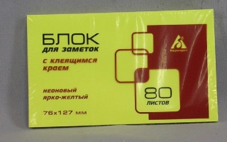 Блок липкий HOPAX 76*127 80 листов неоново желтый 21135