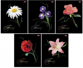 Тетрадь 80л. клетка ХАТБЕР офс. выб. лак. Flower on black. ассорти