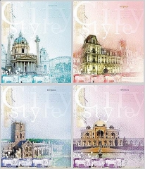 Тетрадь 96л. клетка ПЗ. офс. карт. обл. лак. Городские пейзажи. ассорти
